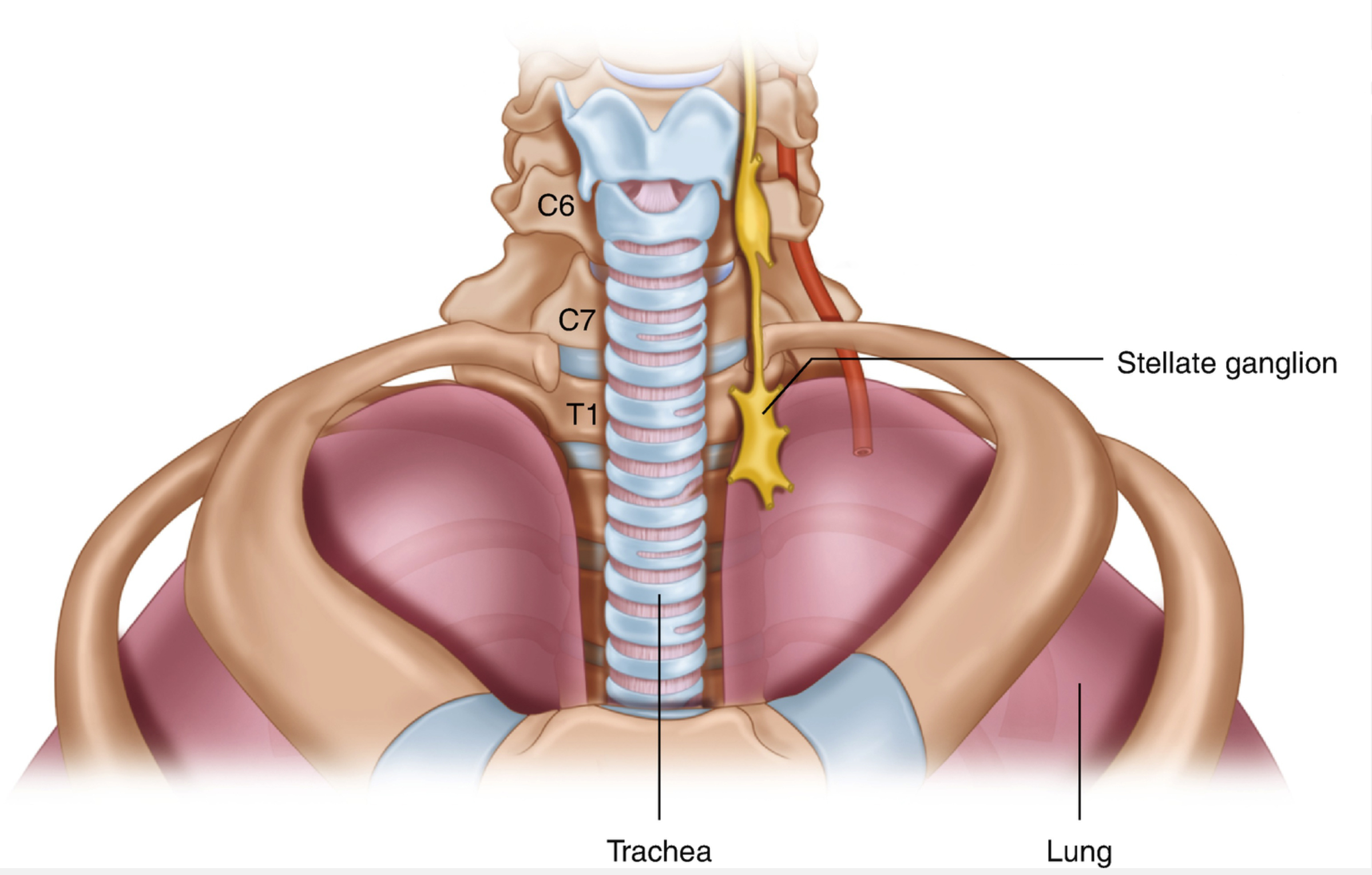 The procedure we use to treat PTSD at Regenesis is known as a stellate ganglion block (SGB). The stellate ganglion is a junction box of autonomic nerves located at the base of the neck at the C6 vertebrae. You can think of the autonomic nervous system as an "automatic" nervous system because it is not under our voluntary control.